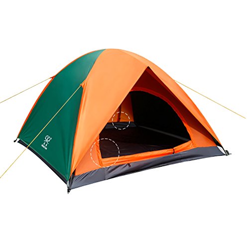 HMLifestyle-Double Layer Tents For Camping Waterproof 2 Person Cold Weather(Two Window,Breathable Sunscreen,Size-200*200*135Cm) (Orrange and green)