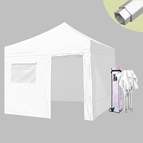 Eurmax Professional 10x10 Pop up Canopy Outdoor Gazebo Aluminum Commercial Tent with 4 Removable Sidewalls and Wheeled Carry Bag (White)